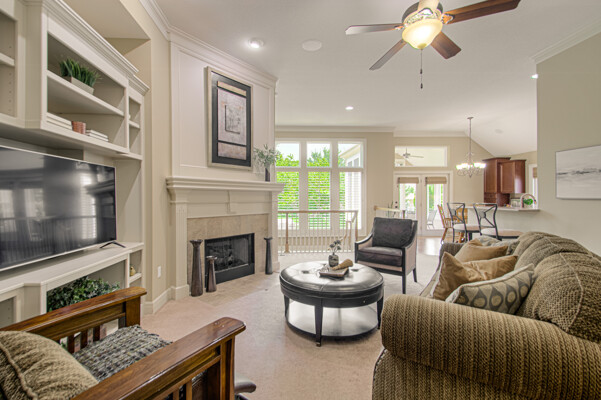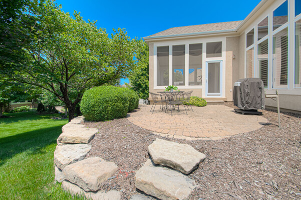 WOW! Award-Winning Open-Concept Price Built Allechant Plan! From the Welcoming Covered Front Porch to the relaxing Backyard Screened Porch overlooking the Private Treed backyard & Paver Patio YOU WILL LOVE this Maintenance-Provided Reverse 1.5 Story Patio/Villa with Low-Maintenance ALL Stucco Exterior! High Ceilings & Crown Molding throughout the Main Floor Living Spaces. The Expansive Living room has a gas-start Fireplace, Custom built-in with adjustable shelves, ceiling fan & a Stunning Wall of Windows with Plantation Shutters provide Panoramic View of the Private Backyard! Enjoy the fabulous Kitchen...Perfectly designed for Entertaining with a breakfast area & bar, tons of Quality Canac Cabinets (many w/pullout shelves), task-lighting, solid-surface counter tops & adjacent to the Formal Dining Room with Plantation Shutters! The Spacious Primary Bedroom has Vaulted Ceilings, Plantation Shutters & a LARGE bathroom with tile floors, dual sinks, spa tub, shower & HUGE Walk-In Closet! A highly desired 2nd Bedroom on the Main Floor (currently an office) has a vaulted ceiling, plantation shutters & a ceiling fan. Convenient 1st Floor laundry room, too! Finished LL includes a Family Room with Fireplace & adjacent Rec-room spaceIdeal for a game table or craft/hobbies & 3rd BedroomPerfect for a Guest with a Full Bath & another HUGE Walk-In Closet! Tons of unfinished LL space for storage or adding another room or workshop. Addl features include upgraded trim throughout, thermal pane windows (including TWO LL egress windows), surround sound & sprinkler. AMAZINGLY LOW monthly HOA Dues provides... lawn care (mowing, fertilizing & edging), snow removal (driveway, private sidewalks & front stoops), winterizing & de-winterizing sprinkler & common area maintenance. All this PLUS a Multi-Million $ Amenity Packageclubhouse, spa, fitness facility & pool! Great Location...just blocks to restaurants, salons, shops, entertainment, grocery stores & easy access to highways!