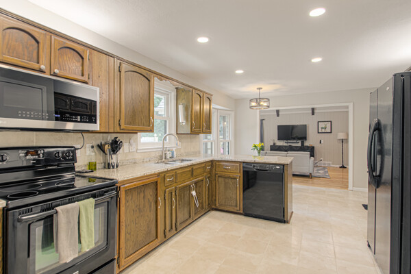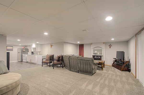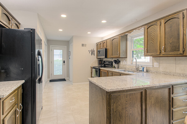 Welcome to this stunning 4-bedroom, 3.5-bathroom home exuding both charm and practicality. Its exterior showcases a blend of low-maintenance vinyl siding and classic brick, ensuring both durability and timeless appeal. Recently updated in 2021, Renewal by Andersen windows grace every room, enhancing energy efficiency and modern aesthetics. Upon entry, the great room captivates with a beautiful fireplace, complemented by a vaulted ceiling and gleaming hardwood floors that add warmth and elegance. The kitchen boasts granite countertops, tile backsplash, and newer dimmable LED lighting, while all appliances, including the refrigerator, remain with the home. The primary suite, conveniently situated on the main level, offers a sanctuary with its walk-in shower, generous closet space, and double sinks. A unique feature is the adjoining front room, perfect for a home office or nursery, providing direct access through the bathroom. Upstairs, three additional bedrooms share a full bath. And new carpet was recently added. The basement is a versatile space, boasting a newer sheetrock drop ceiling and a full bath, with carpet and lighting updated in 2019. A full kitchen, complete with appliances, enhances functionality, while ample storage and two non-conforming bedrooms cater perfectly to guests or teenage children. Outside, the fenced backyard offers privacy and tranquility, featuring a quaint patio ideal for outdoor gatherings and relaxation. Located in a perfect location, this home seamlessly combines modern amenities with thoughtful design, offering comfort, style, and functionality at every turn. So much Square footage for the money!!