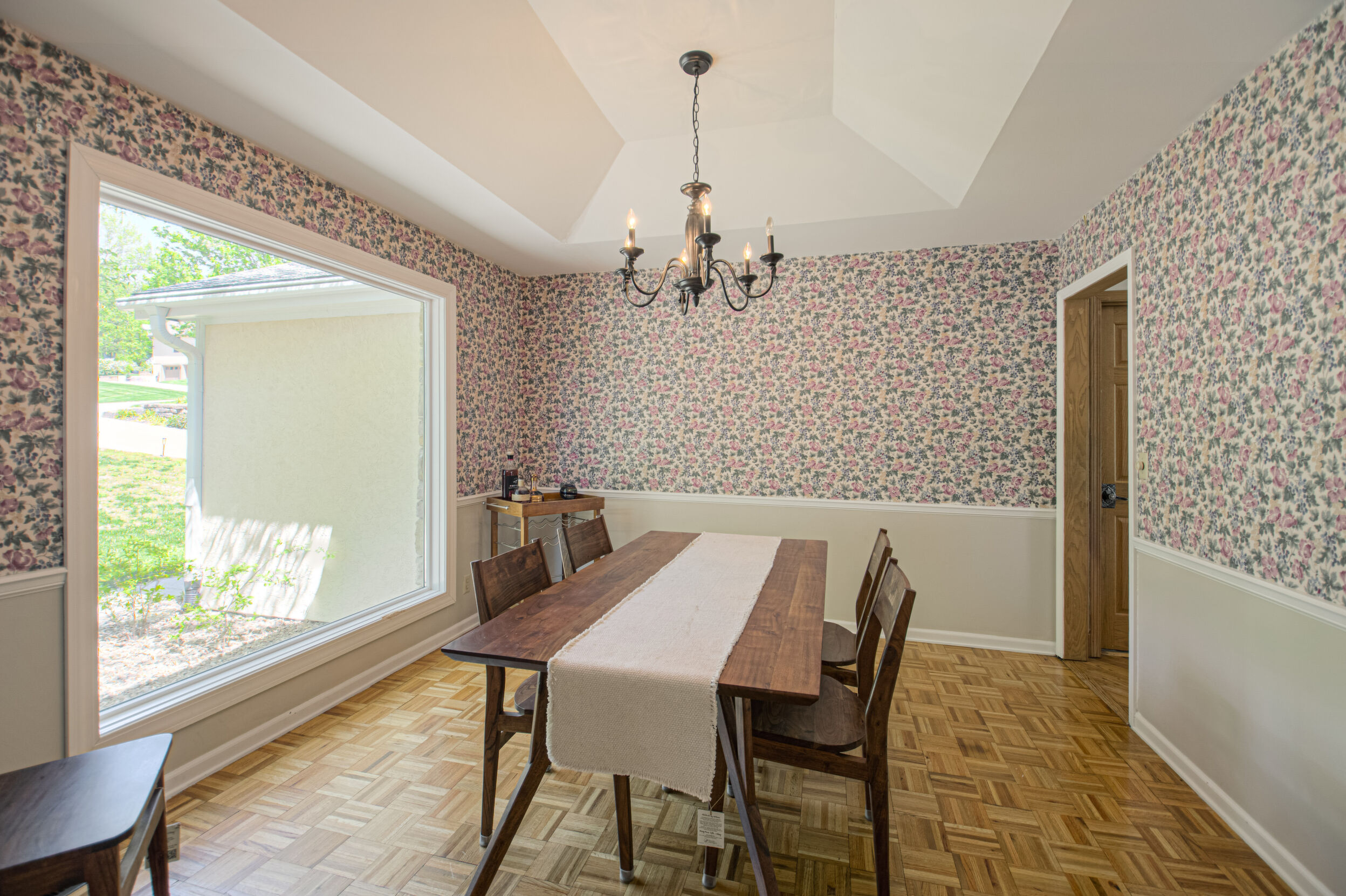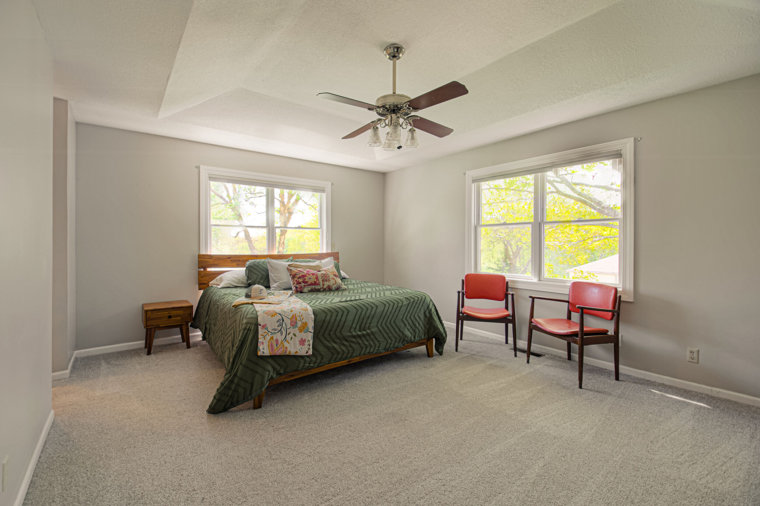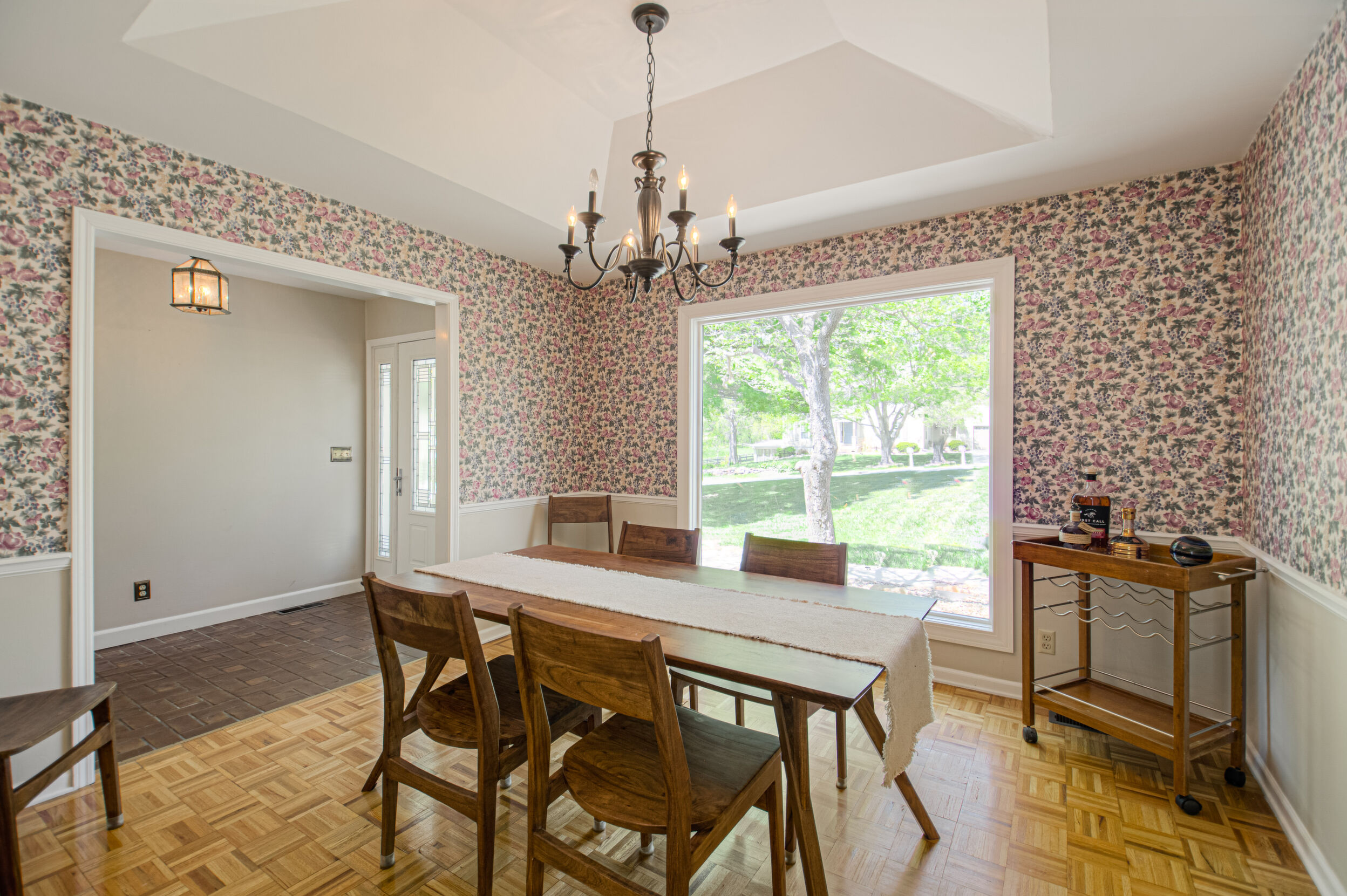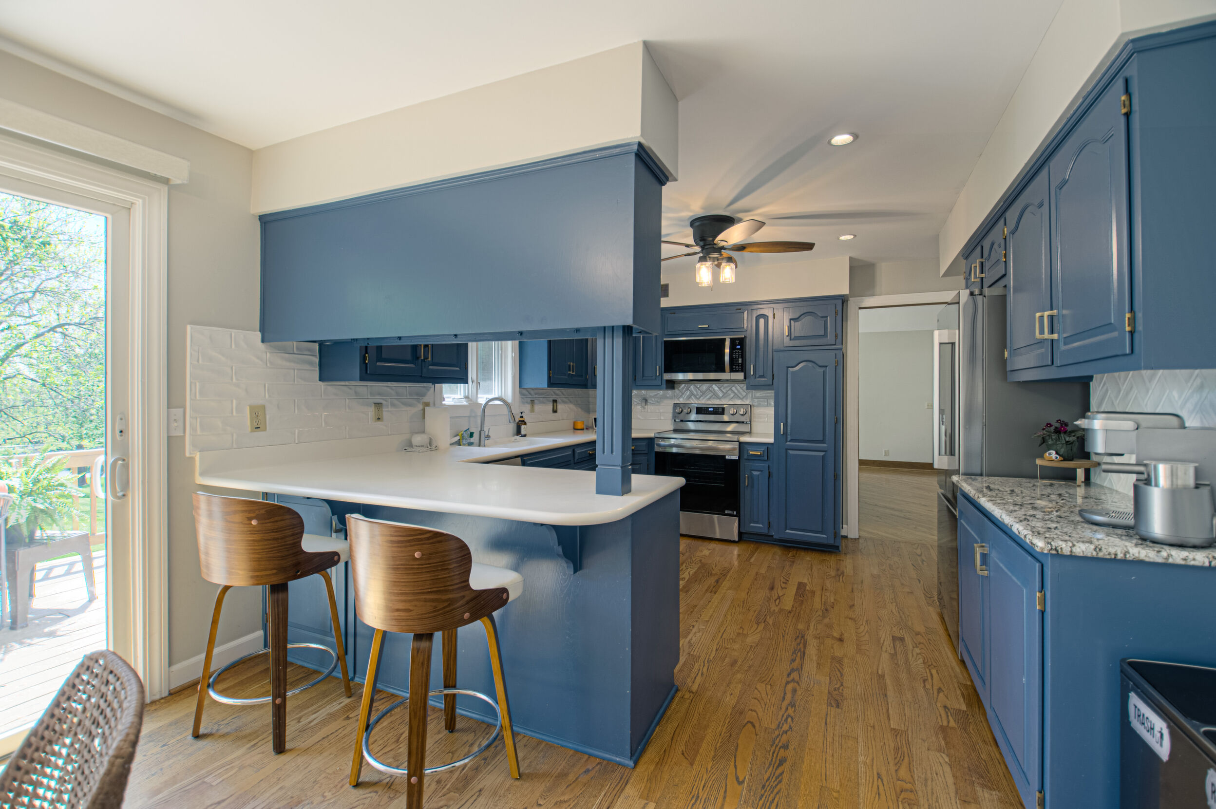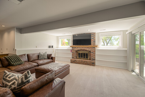 Nestled on a scenic 1-acre lot with peaceful water views, this beautifully maintained reverse 1.5-story home offers privacy, comfort, and a highly desirable location with no HOA and access to the acclaimed Blue Valley School District. Designed for convenience and flexibility, the main level features two bedrooms and two full bathrooms, including a spacious primary suite. The kitchen provides a casual dining area with tranquil backyard views and direct access to the deck-perfect for relaxing or entertaining. Nearby, a formal dining space and an inviting living room with a stone fireplace and hardwood flooring create a warm, welcoming atmosphere. A main-level laundry and pantry area adds everyday ease. The finished walk-out lower level expands the living space with a large recreation room, complete with a bar and second fireplace. Two additional bedrooms, a full bathroom, and a second laundry area offer excellent options for guests or extended living arrangements. Step outside to a covered patio and enjoy the natural surroundings. The property's outdoor setting is a standout feature, showcasing mature landscaping, a waterfall element, flagstone pathways, and frequent wildlife sightings, all set against a peaceful water backdrop. Despite its private feel, the home is conveniently located near shopping, dining, entertainment, and medical facilities at BluHawk. Additional highlights include a whole-house generator, updated 200-amp electrical service, newer roof (approximately 7 years), gutter guards (approximately 3 years), updated deck, replacement windows (Pella and Andersen), upgraded Onyx bathrooms, side-entry garage, and hard surface countertops. Interior and Aerial photos coming soon.