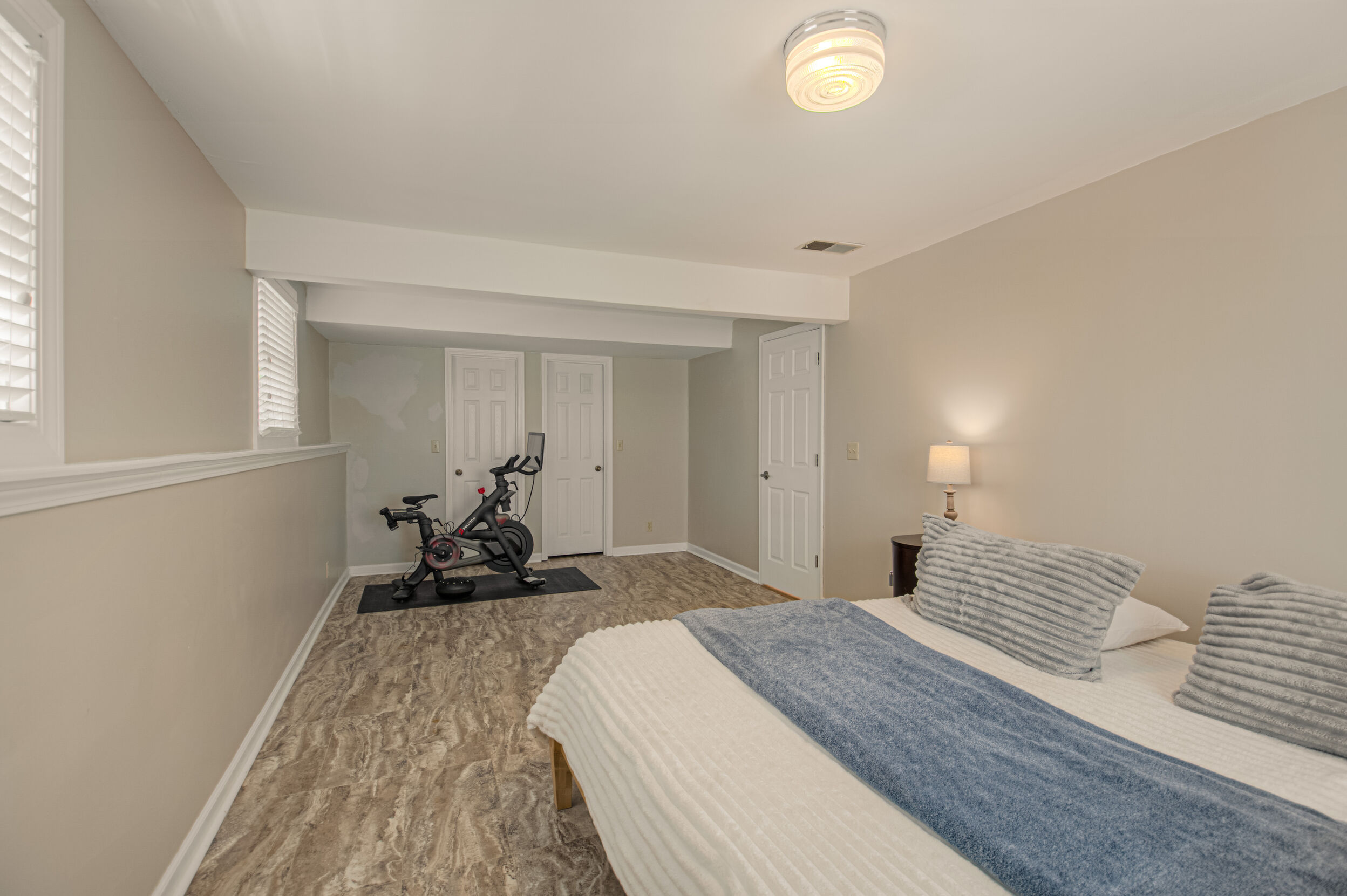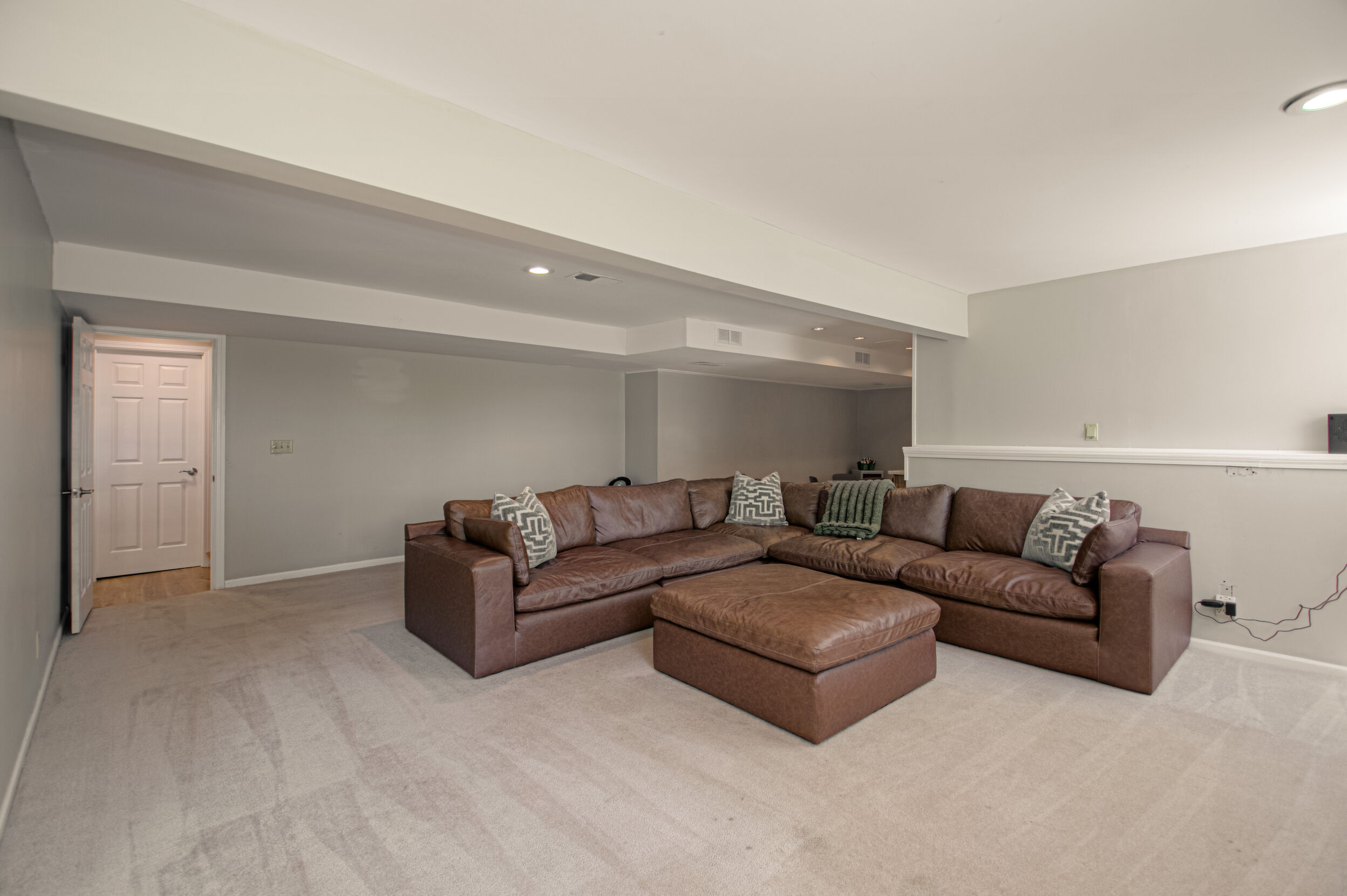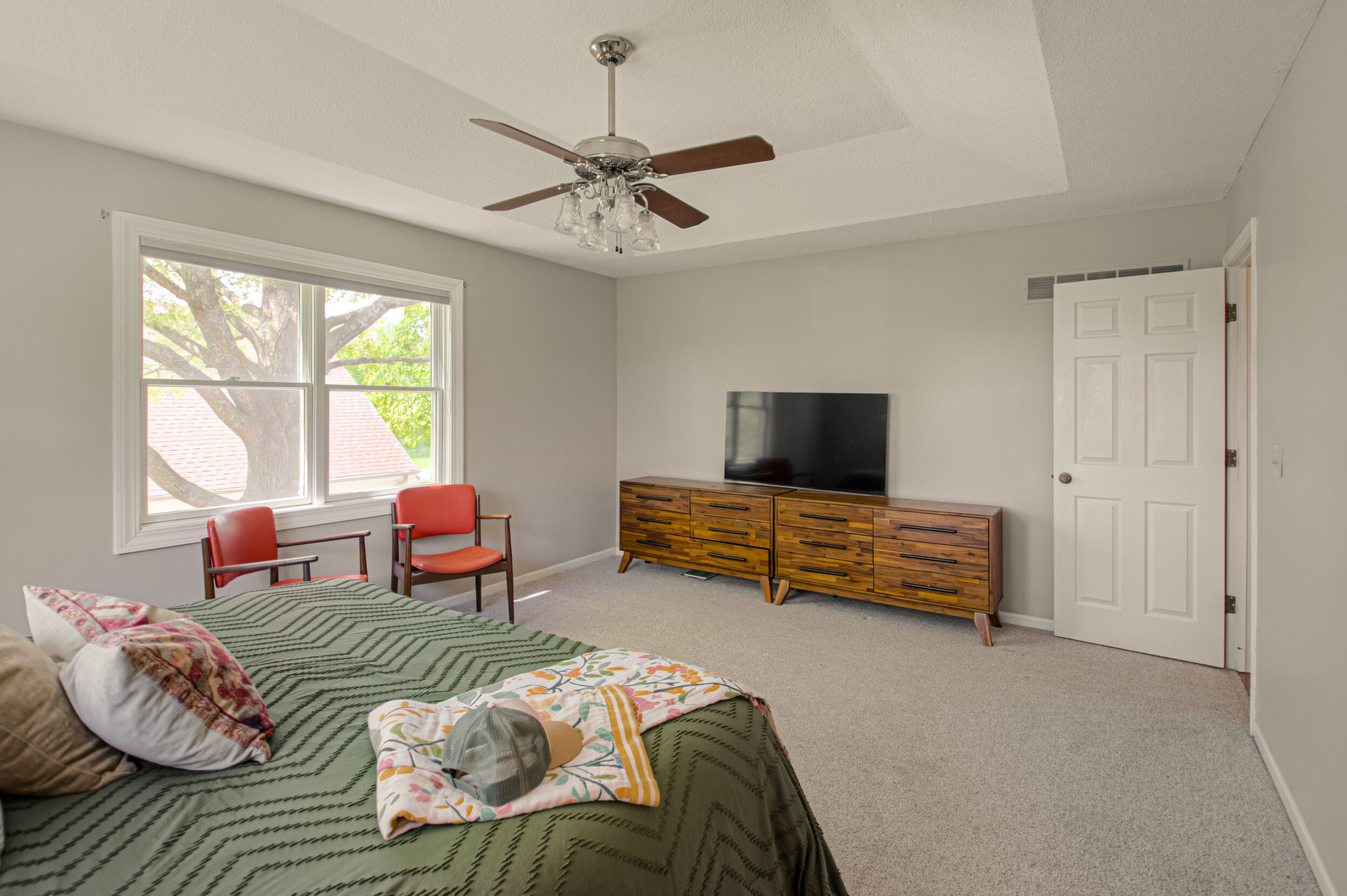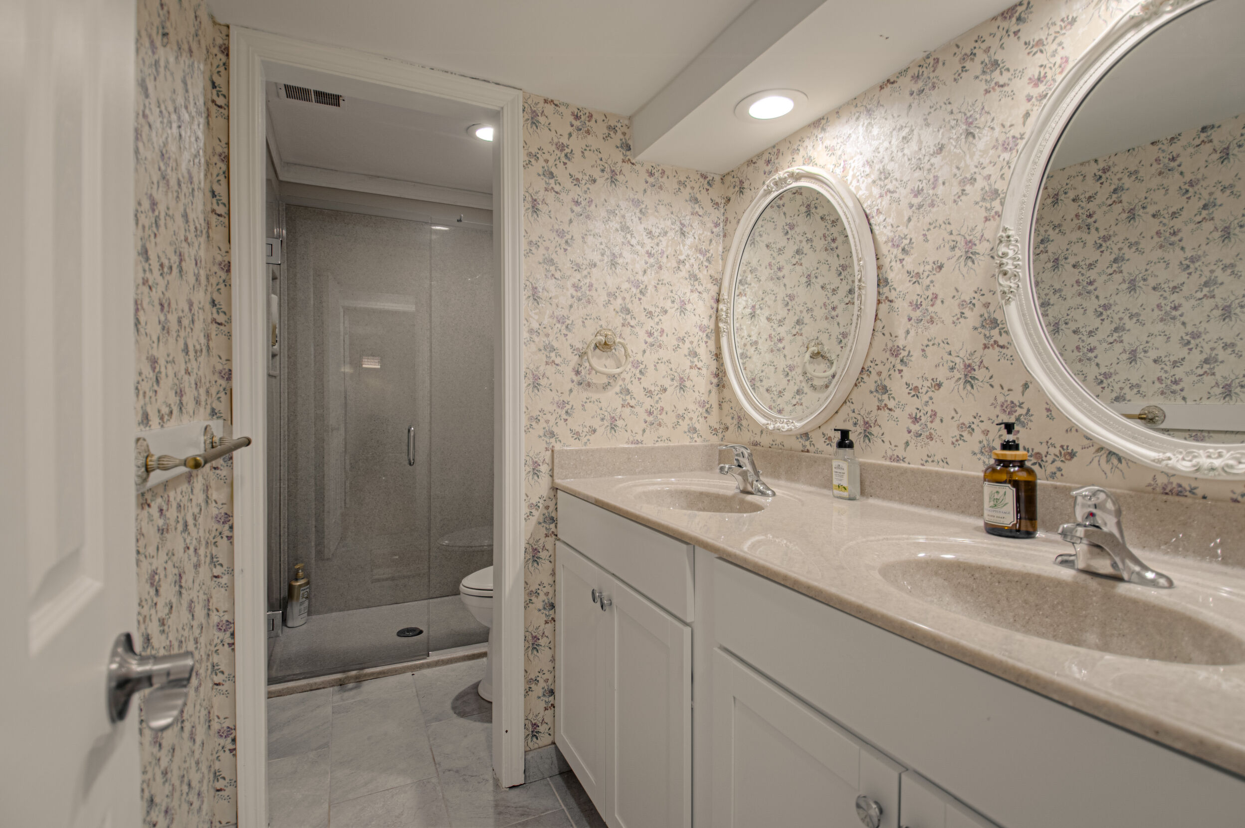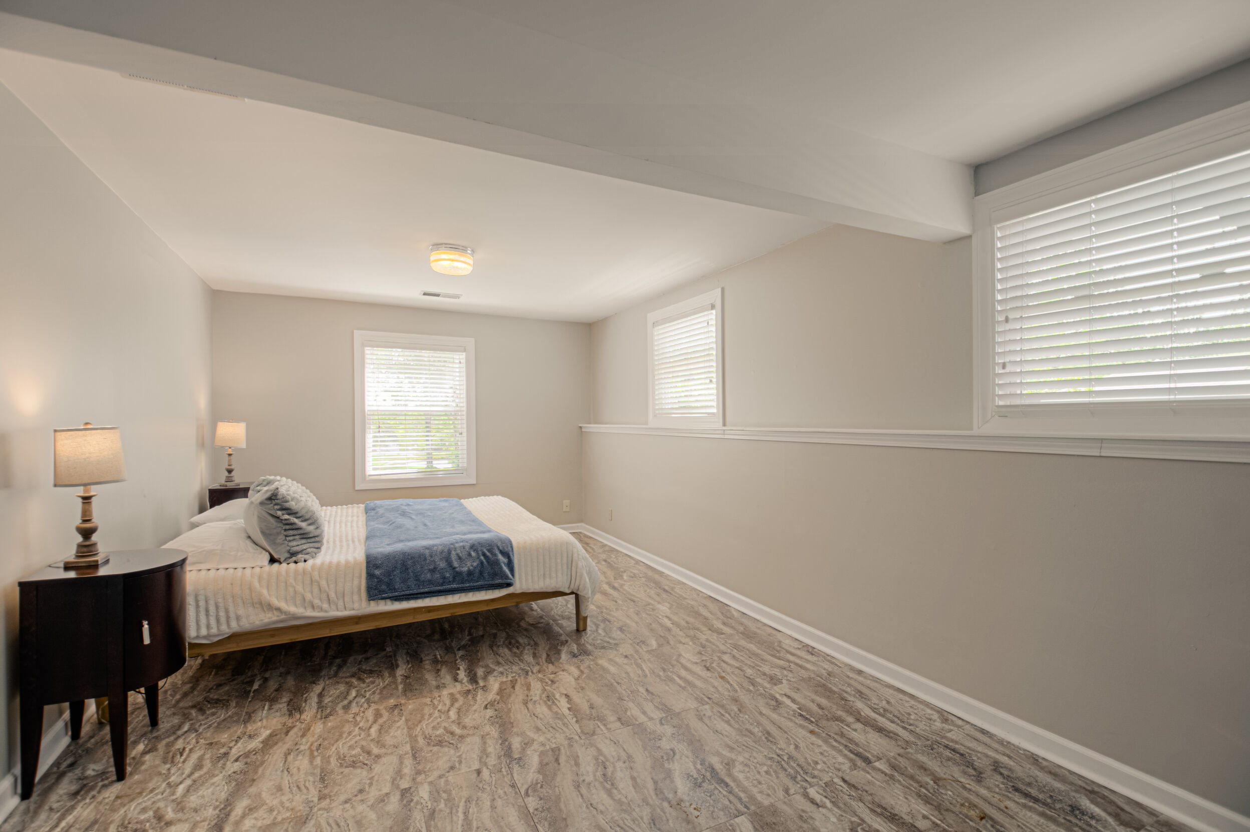 Nestled on a scenic 1-acre lot with peaceful water views, this beautifully maintained reverse 1.5-story home offers privacy, comfort, and a highly desirable location with no HOA and access to the acclaimed Blue Valley School District. Designed for convenience and flexibility, the main level features two bedrooms and two full bathrooms, including a spacious primary suite. The kitchen provides a casual dining area with tranquil backyard views and direct access to the deck-perfect for relaxing or entertaining. Nearby, a formal dining space and an inviting living room with a stone fireplace and hardwood flooring create a warm, welcoming atmosphere. A main-level laundry and pantry area adds everyday ease. The finished walk-out lower level expands the living space with a large recreation room, complete with a bar and second fireplace. Two additional bedrooms, a full bathroom, and a second laundry area offer excellent options for guests or extended living arrangements. Step outside to a covered patio and enjoy the natural surroundings. The property's outdoor setting is a standout feature, showcasing mature landscaping, a waterfall element, flagstone pathways, and frequent wildlife sightings, all set against a peaceful water backdrop. Despite its private feel, the home is conveniently located near shopping, dining, entertainment, and medical facilities at BluHawk. Additional highlights include a whole-house generator, updated 200-amp electrical service, newer roof (approximately 7 years), gutter guards (approximately 3 years), updated deck, replacement windows (Pella and Andersen), upgraded Onyx bathrooms, side-entry garage, and hard surface countertops. Interior and Aerial photos coming soon.